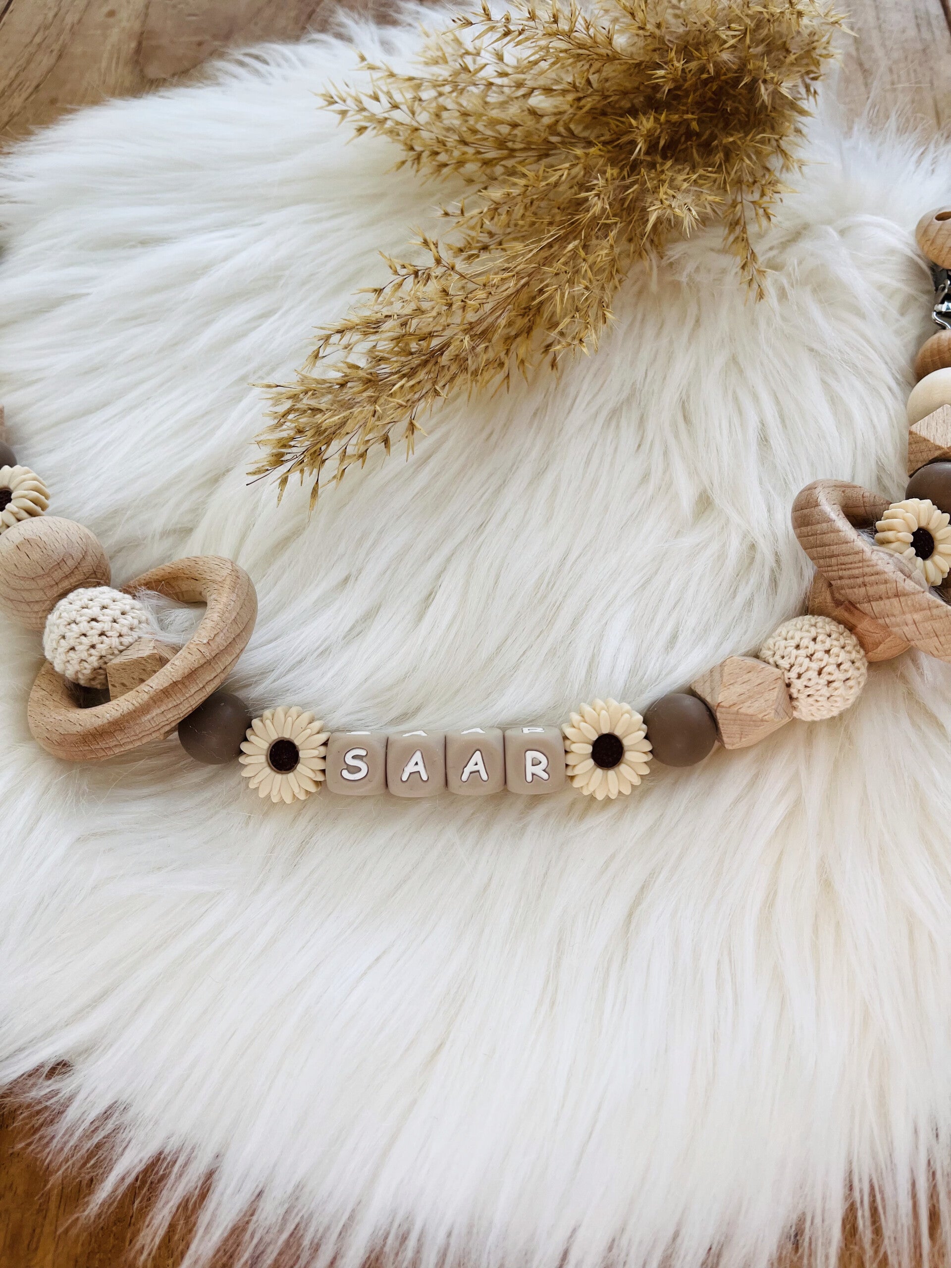 Een wagenspanner is de perfecte manier om je baby te vermaken terwijl jullie lekker onderweg zijn. Deze hanger hangt boven het wiegje of de kinderwagen en zorgt voor afleiding én visuele stimulatie. Net als de speenkoorden zijn onze wagenspanners handgemaakt en gemaakt van natuurlijke materialen zoals houten kralen siliconen kralen. Onze kleuren zijn meestal zachte pastels of rustige aardetinten, wat een fijne, kalmerende sfeer creëert.